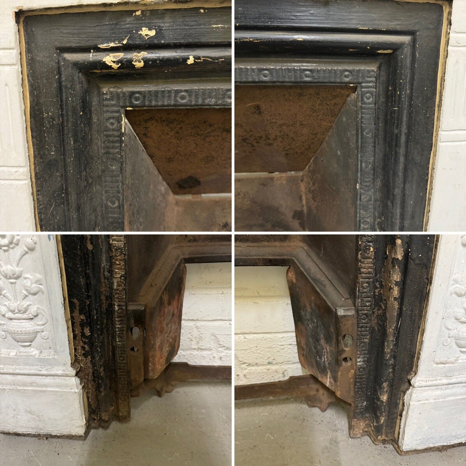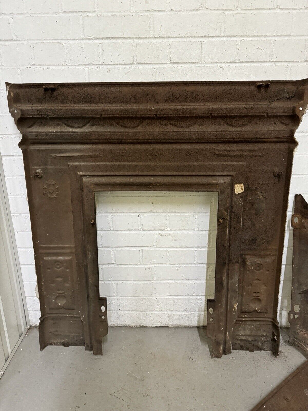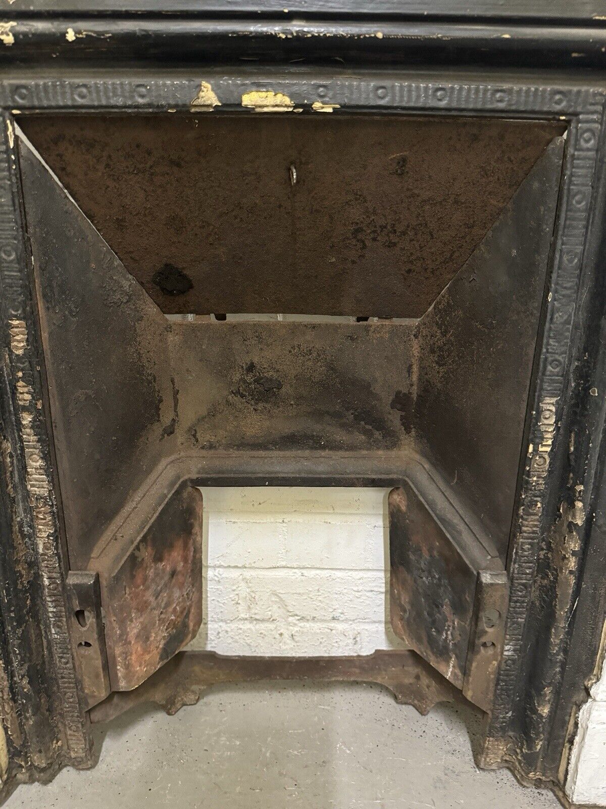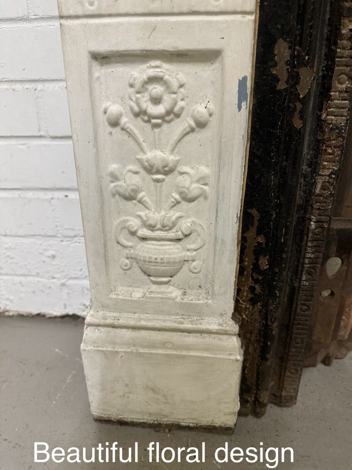 Antique Reclaimed Victorian Edwardian Cast Iron Distressed Fireplace Mantle