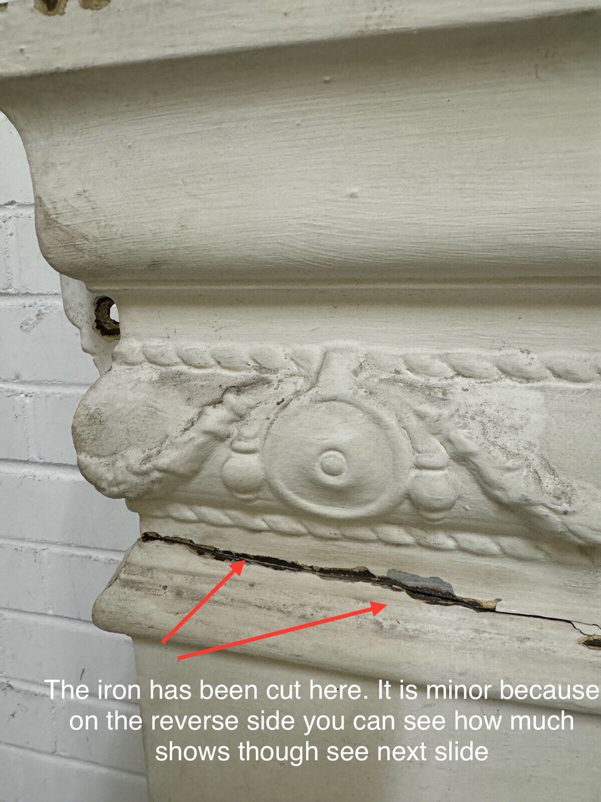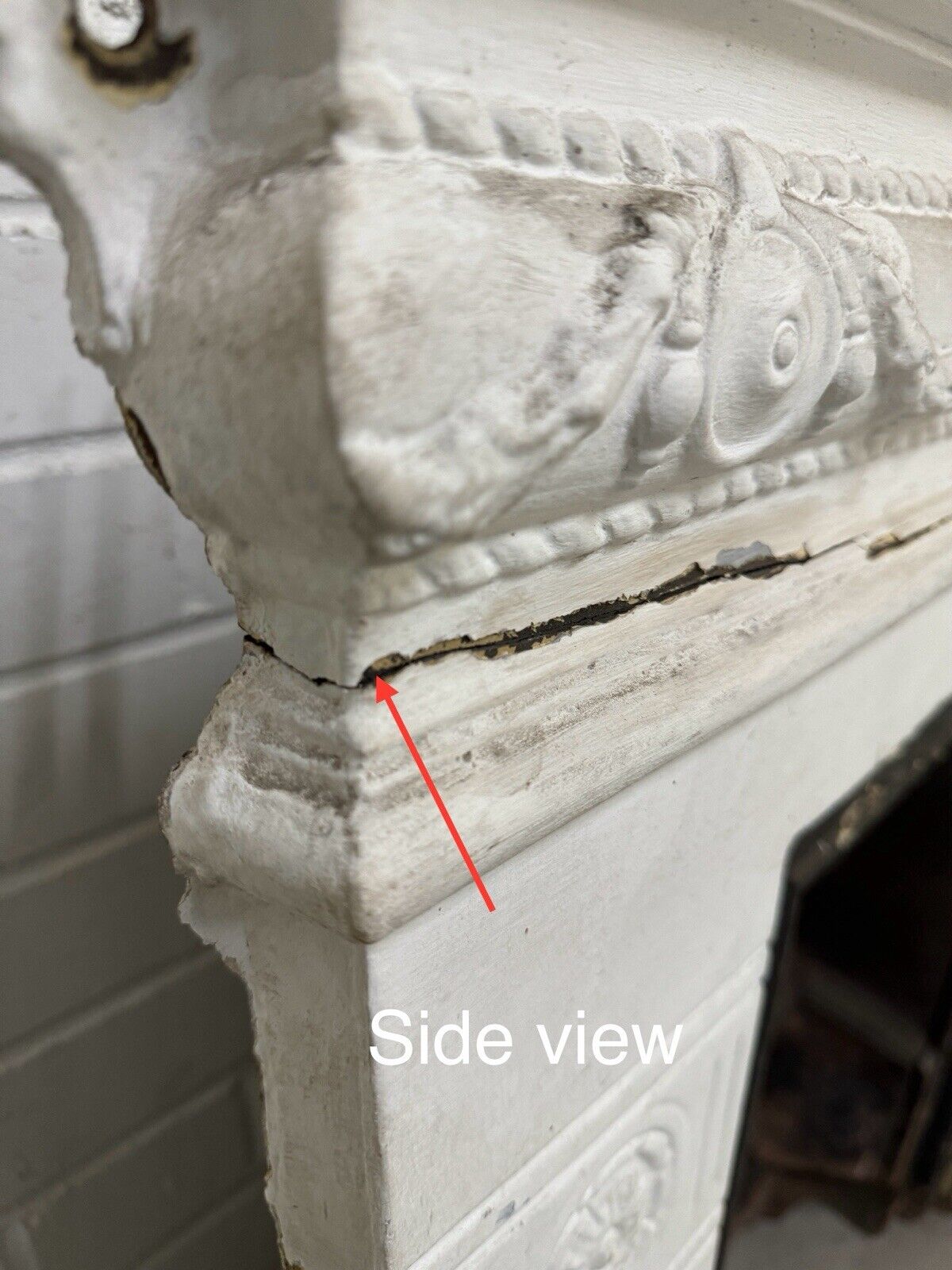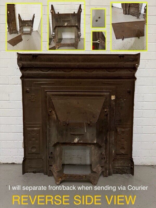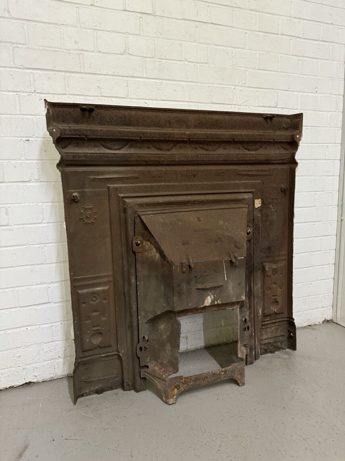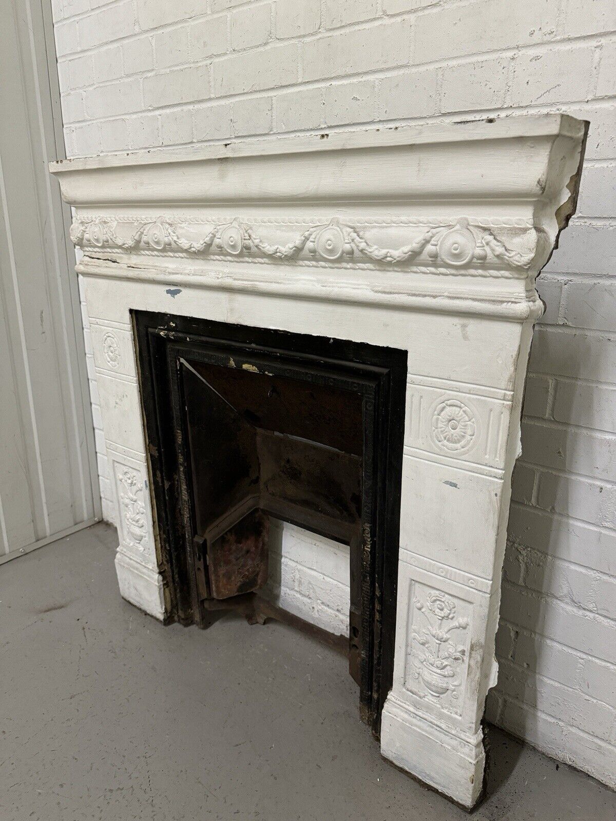 Antique Reclaimed Victorian Edwardian Cast Iron Distressed Fireplace Mantle
