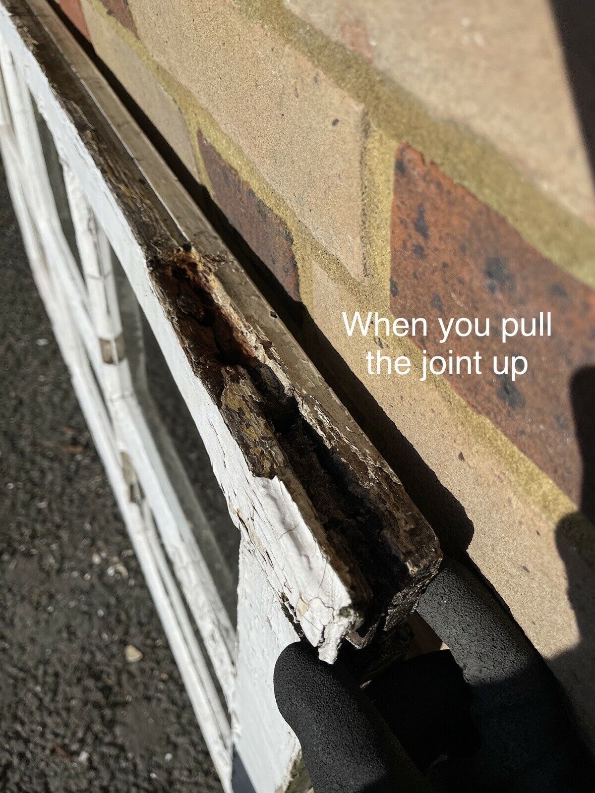 The wooden panel on one side of the frame is coming away.