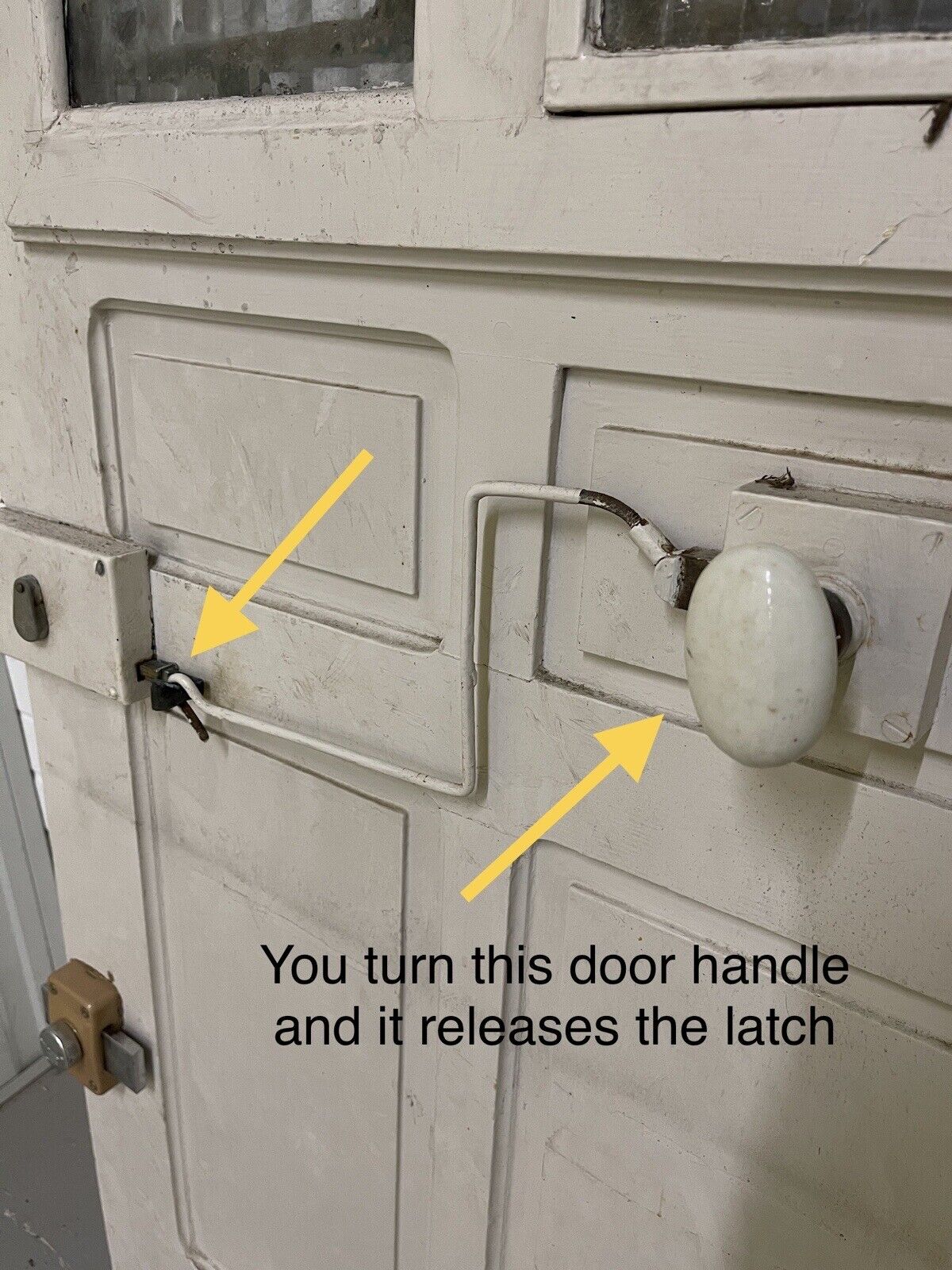 The door has a special feature of which the middle glass panel has a latch of which it opens.