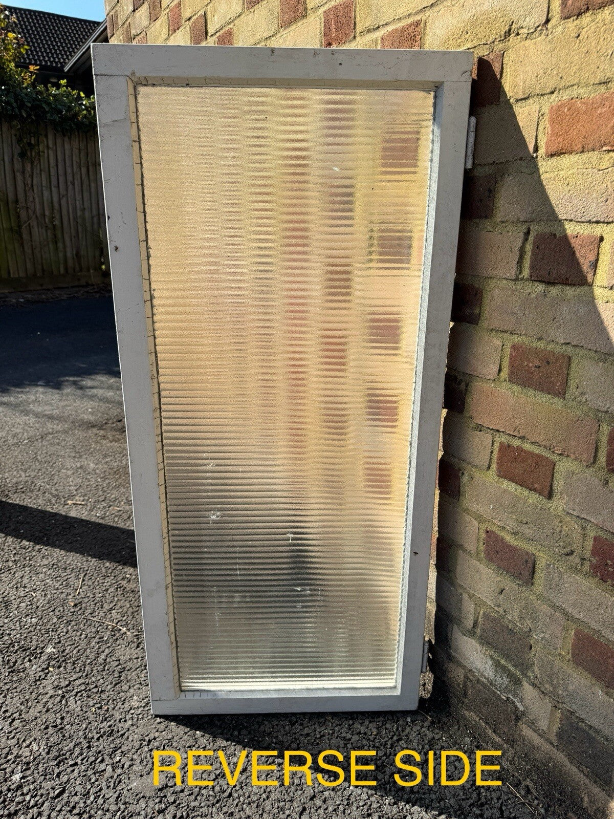 Reclaimed Frosted Reeded Glass Wooden Window 1140 or 1120mm x 525 or 505mm