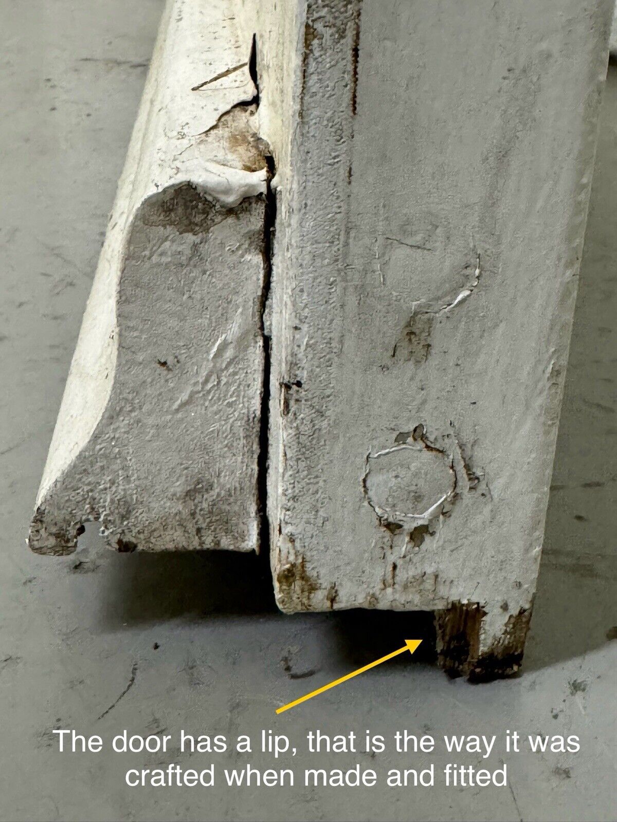 When the door was crafted it had lip on the bottom reverse side.