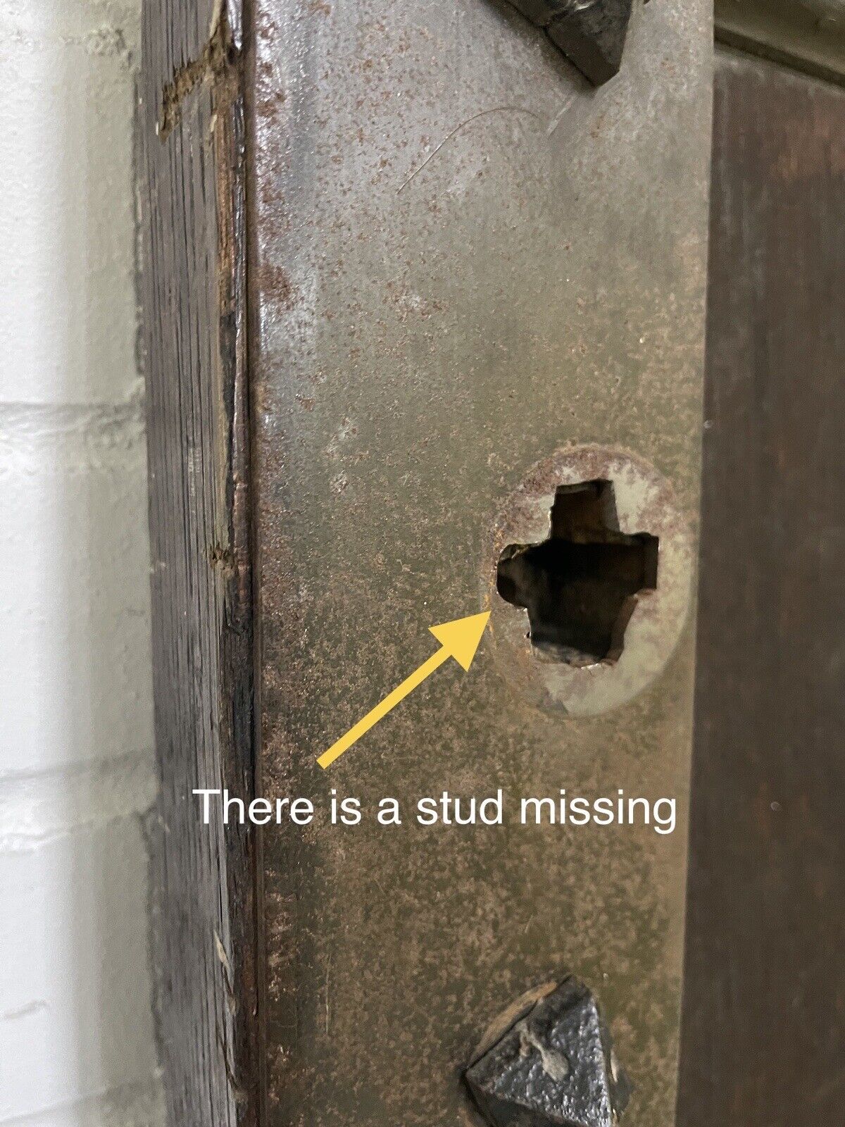There is one metal stud missing.
