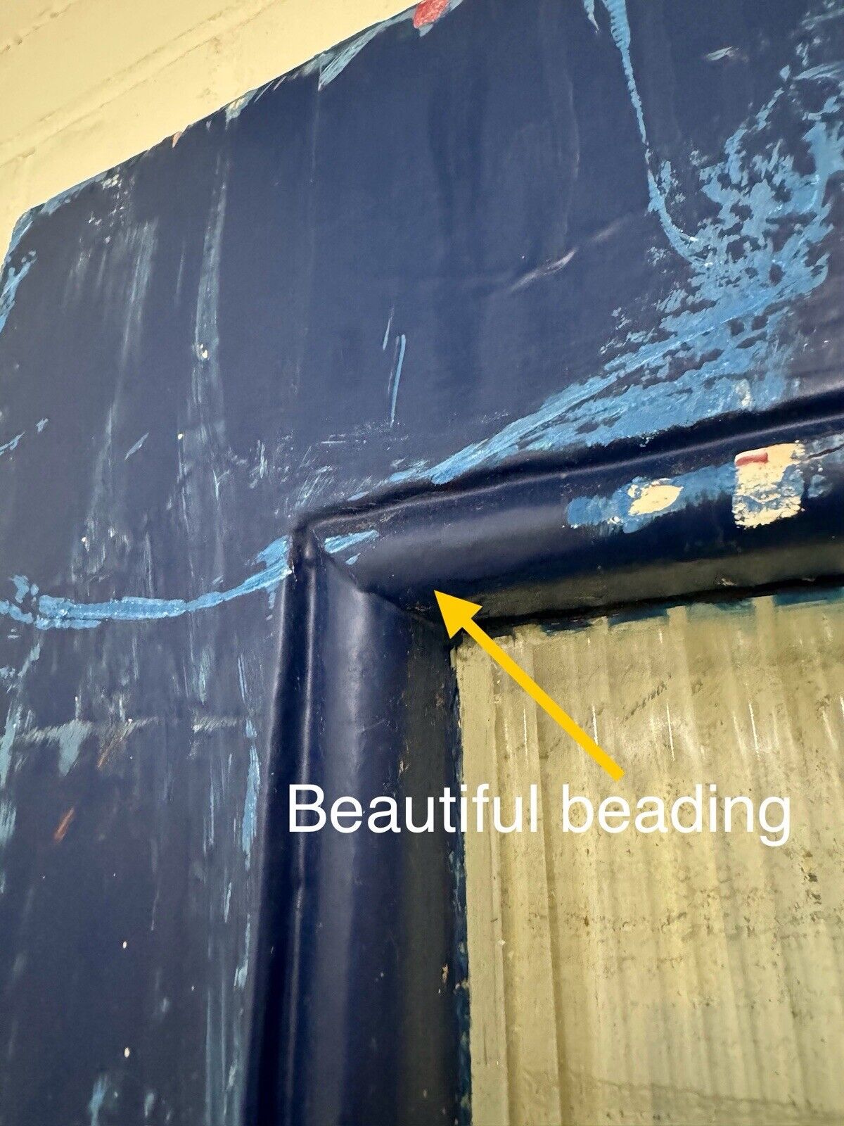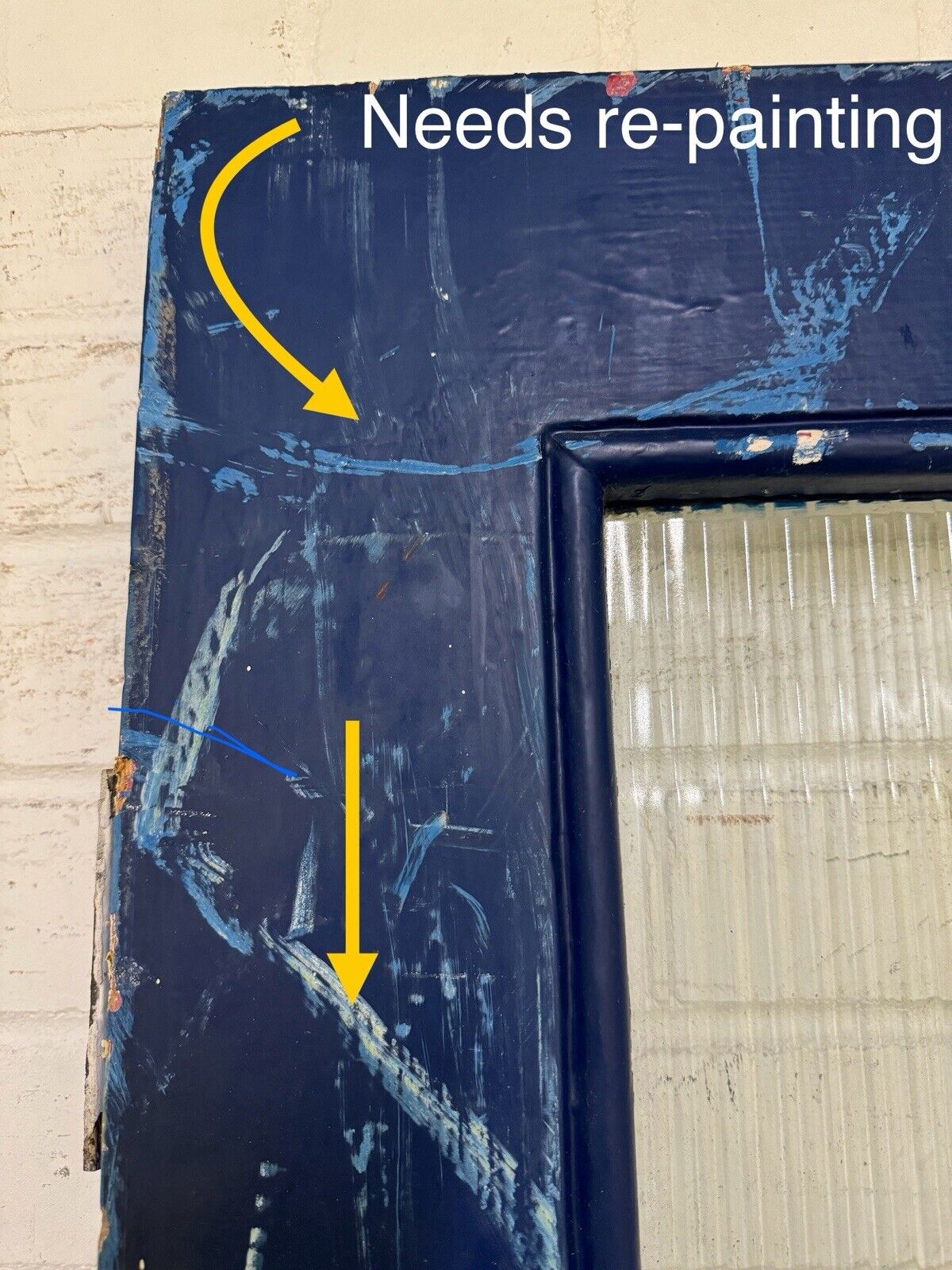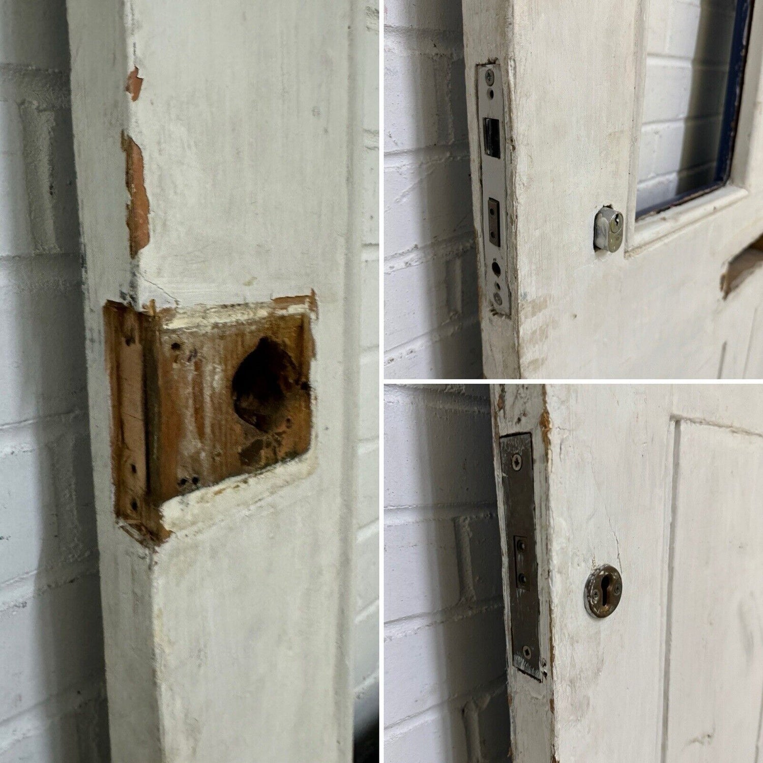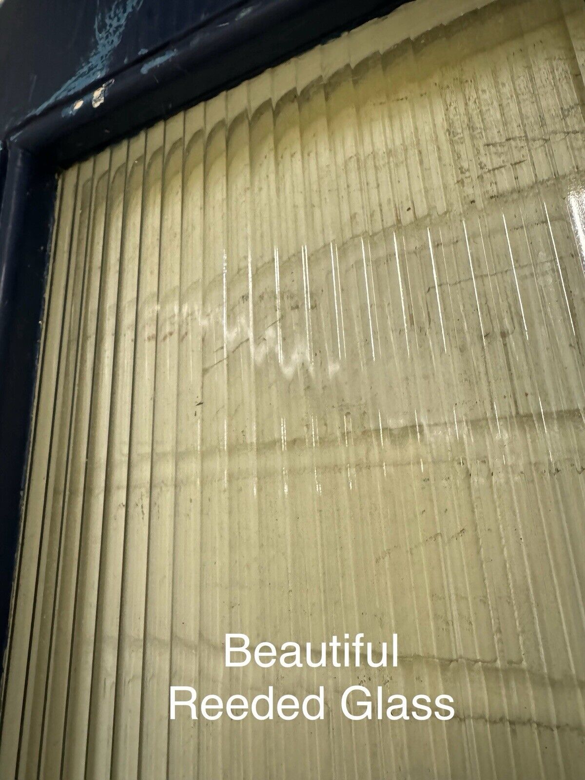 A beautiful reclaimed front door with beautiful embossed bottom panels.