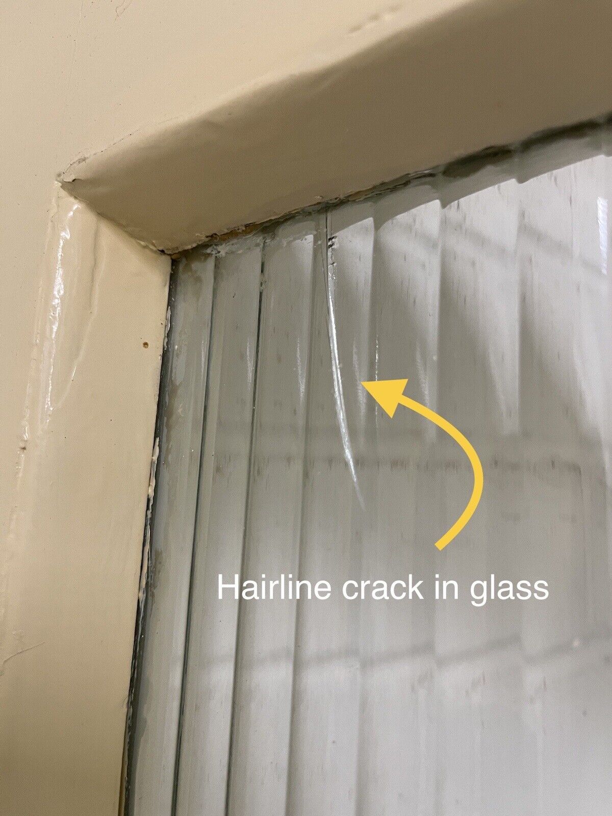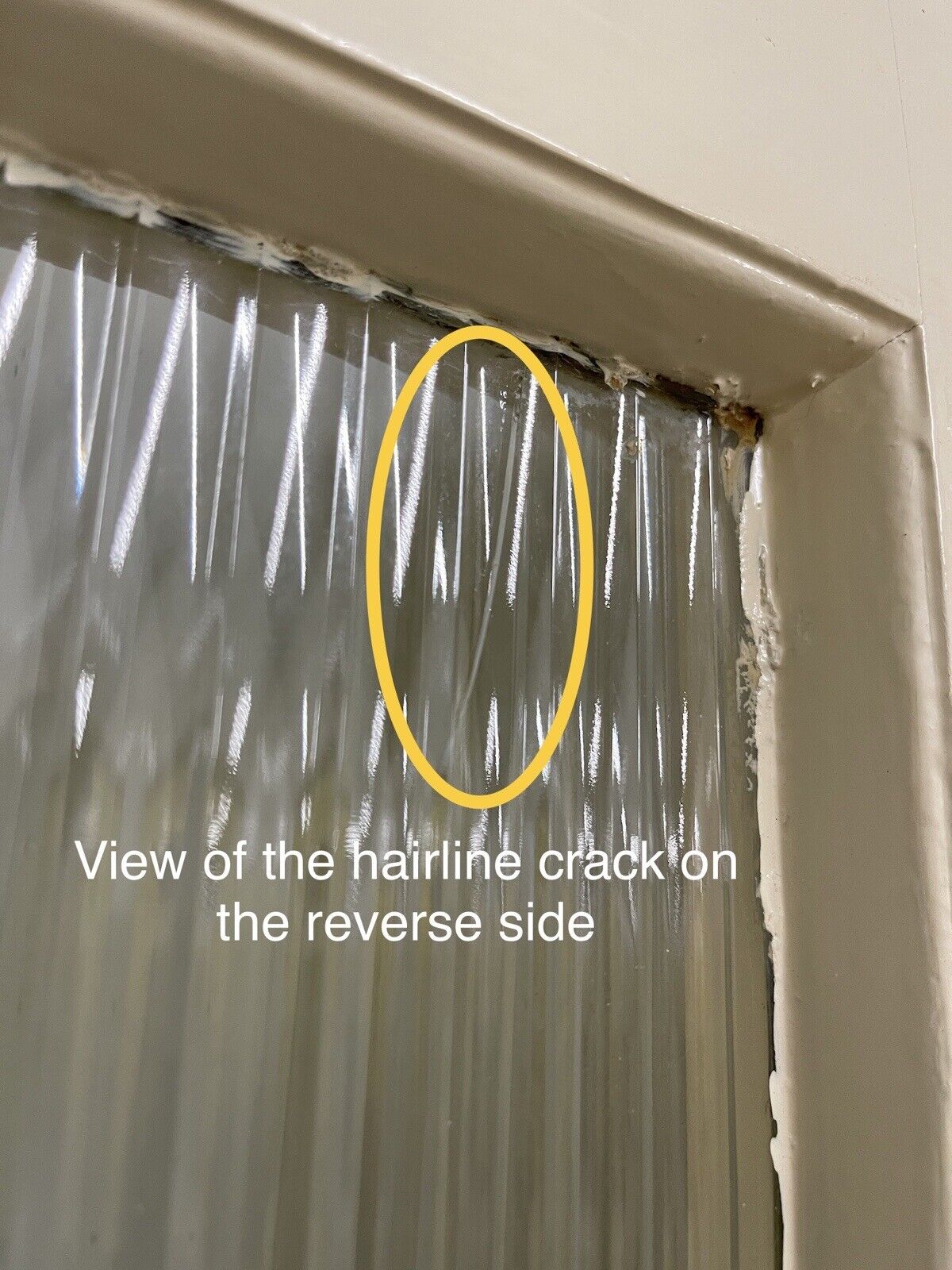 There is a hairline crack within the reeded glass in the corner of the frame.